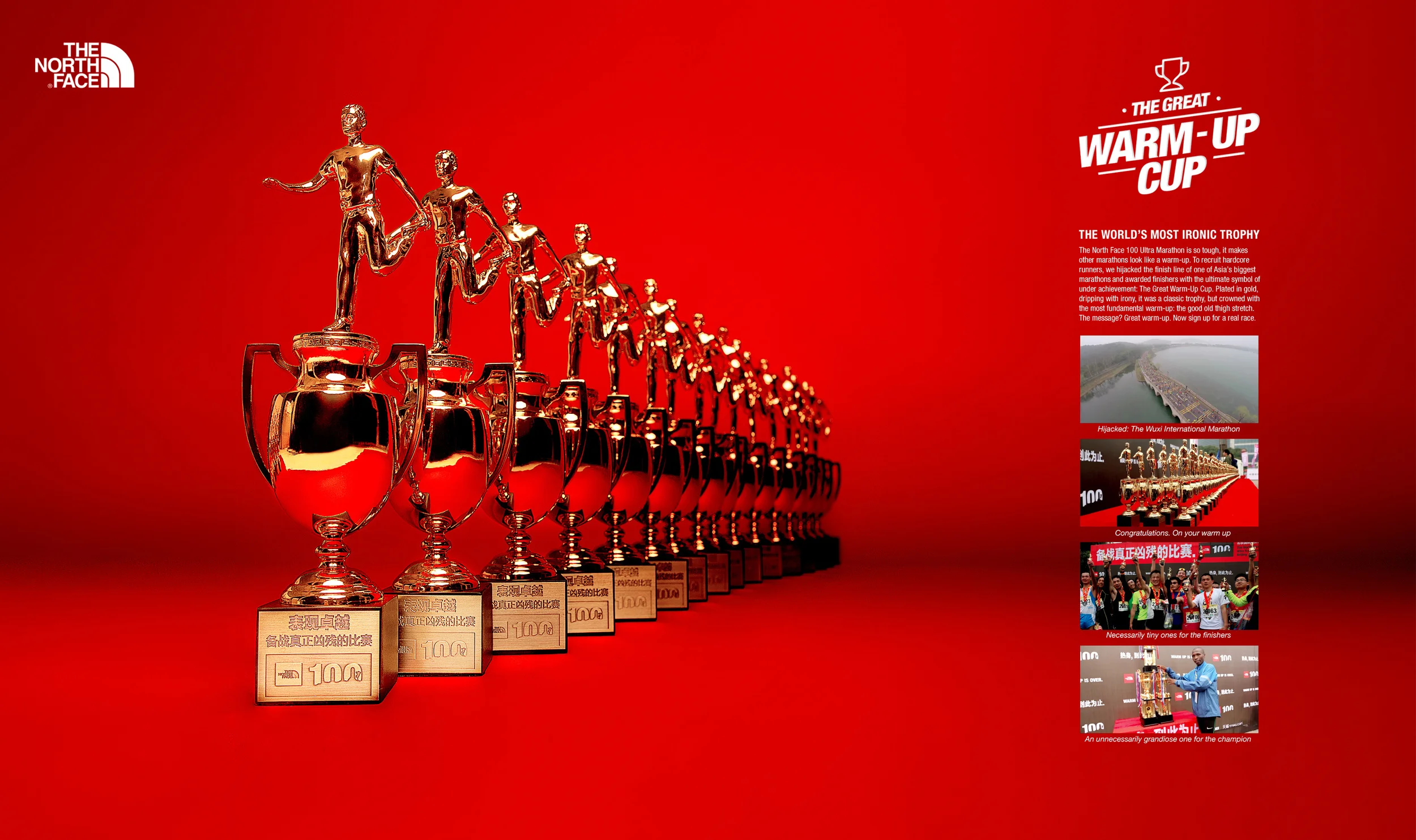 The North Face 100 Ultra Marathon is so tough, it makes other marathons look like a warm-up. To recruit hardcore runners, we hijacked the finish line of one of Asia’s biggest marathons, and awarded finishers with the ultimate symbol of under-achievement – The Great Warm-Up Cup – plated in gold, dripping with irony. The message? Great Warm Up.